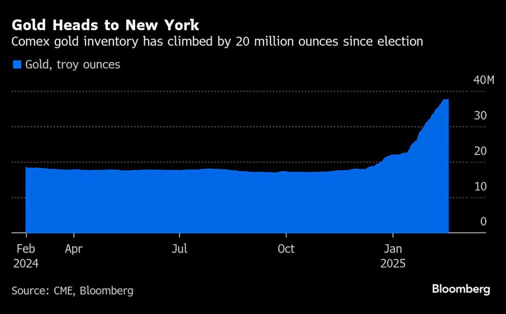 Prices on New York’s Comex — which trades futures — surged over international benchmarks including spot prices in London in recent weeks amid concerns gold may be hit with US tariffs. That discrepancy is rare, echoing a disconnect seen in the market during the pandemic. Amid the upheaval, there’s been a rush to send metal to the US, with record outflows from London vaults.