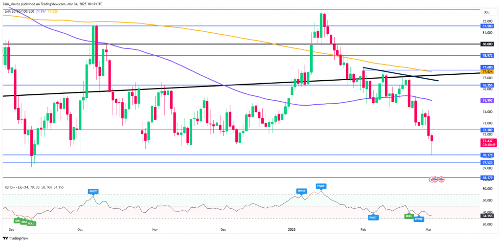 From a technical analysis standpoint, Brent is now trading at six-month lows but has bounced off a key level of support at 70.178.