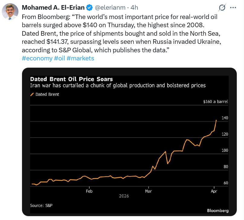 Especially if we don’t get a resolution this week, expect those paper market oil prices to close a lot of the gap Mohamed El-Erian described below late last week.