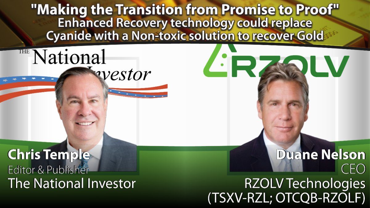 But here again–especially as we think long-term and take / build positions in great stories–NOW is the time to take advantage of the recent pullback as well in shares of RZOLV Technologies, Inc. (TSXV-RZL; OTCQB-RZOLF) whose C.E.O. Duane Nelson you can hear from RIGHT HERE or by clicking on the graphic below.