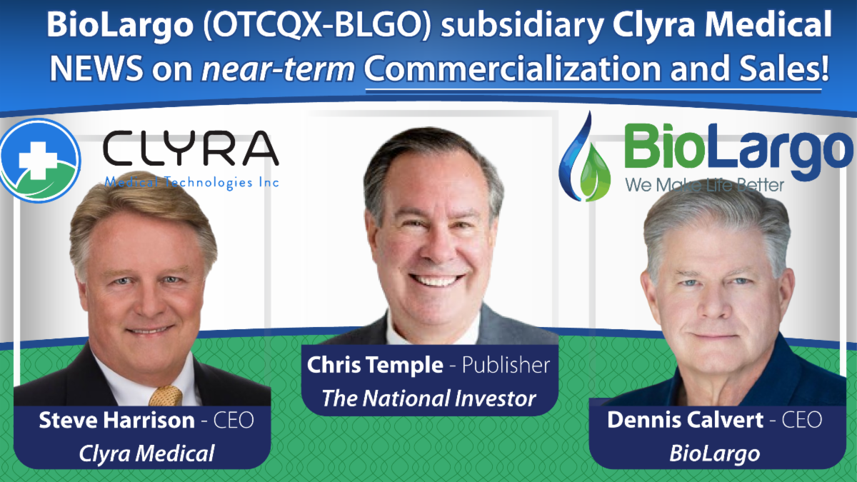 BioLargo C.E.O. Dennis Calvert and I were joined in this go-round by Steve Harrison, the C.E.O. specifically of BLGO subsidiary Clyra Medical (Dennis is the Chairman of that entity.)