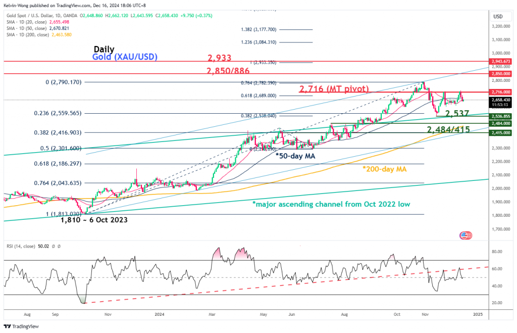Since our last publication, the price actions of Gold (XAU/USD) have staged a minor bounce of 7% to revisit the prior minor swing of US$2,710 printed on 8 November twice; on 22 November and 11 December but failed to make a significant breakout above US$2,710.