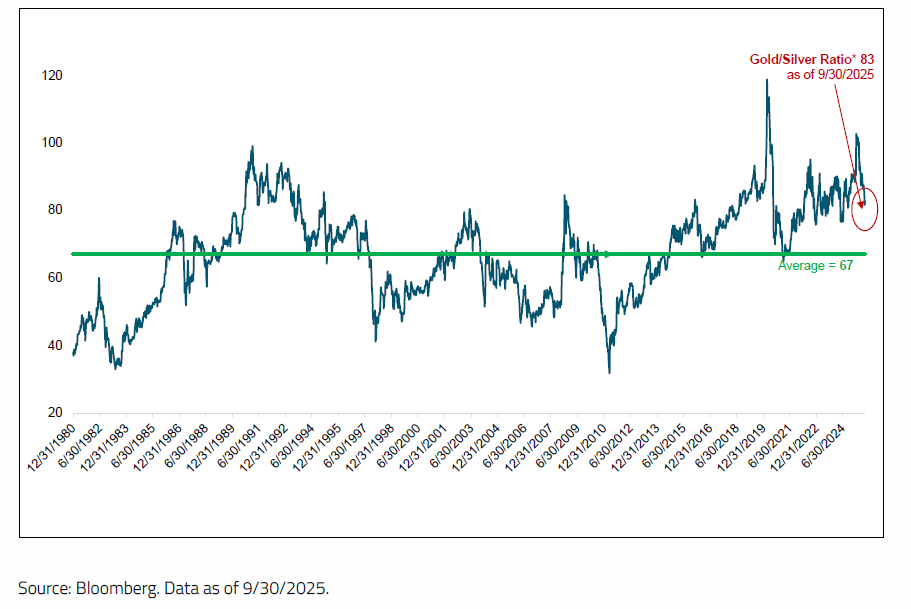 In his note, Hathaway said that years of deficits in silver have led to extreme market tightness, and silver has been outperforming strongly, with year-to-date gains surpassing that of gold. Despite this recent catch-up performance with respect to gold, the gold-to-silver ratio at 83x still sits above its historic average of 67x, he wrote, highlighting silver’s potential upside.