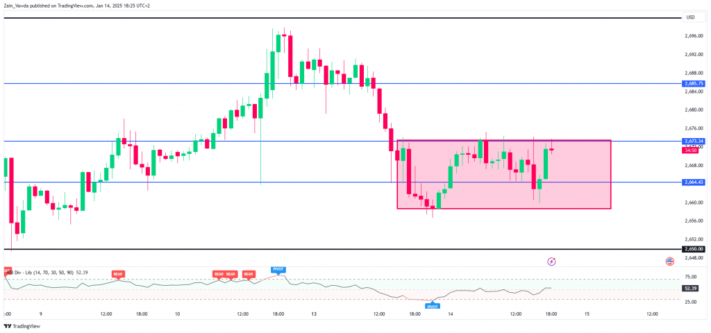 Gold (XAU/USD) One-Hour H1 Chart, January 14, 2025