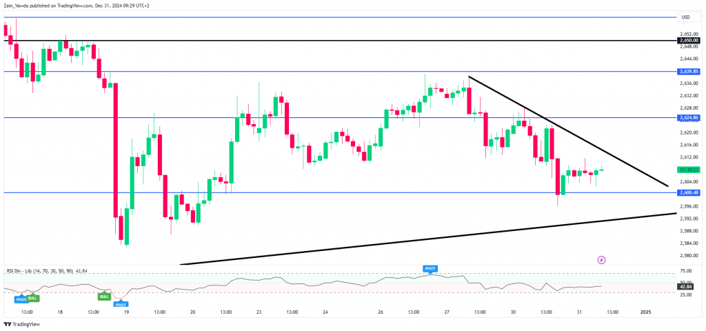 Gold (XAU/USD) Two-Hour (H4) Chart, December 31, 2024