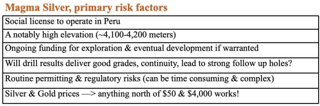 Disclosures/disclaimers: The content of this article is for information only. Readers fully understand and agree that nothing contained herein, written by Peter Epstein of Epstein Research [ER], (together, [ER] ) about Magma Silver, including but not limited to, commentary, opinions, views, assumptions, reported facts, calculations, etc. is not to be considered implicit or explicit investment advice. Nothing contained herein is a recommendation or solicitation to buy or sell any security. [ER] is not responsible under any circumstances for investment actions taken by the reader. [ER] has never been, and is not currently, a registered or licensed financial advisor or broker/dealer, investment advisor, stockbroker, trader, money manager, compliance or legal officer, and does not perform market-making activities. [ER] is not directly employed by any company, group, organization, party, or person. The shares of Magma Silver are highly speculative, and not suitable for all investors. Readers understand and agree that investments in small-cap stocks can result in a 100% loss of invested funds. It is assumed and agreed upon by readers that they will consult with their own licensed or registered financial advisors before making investment decisions.