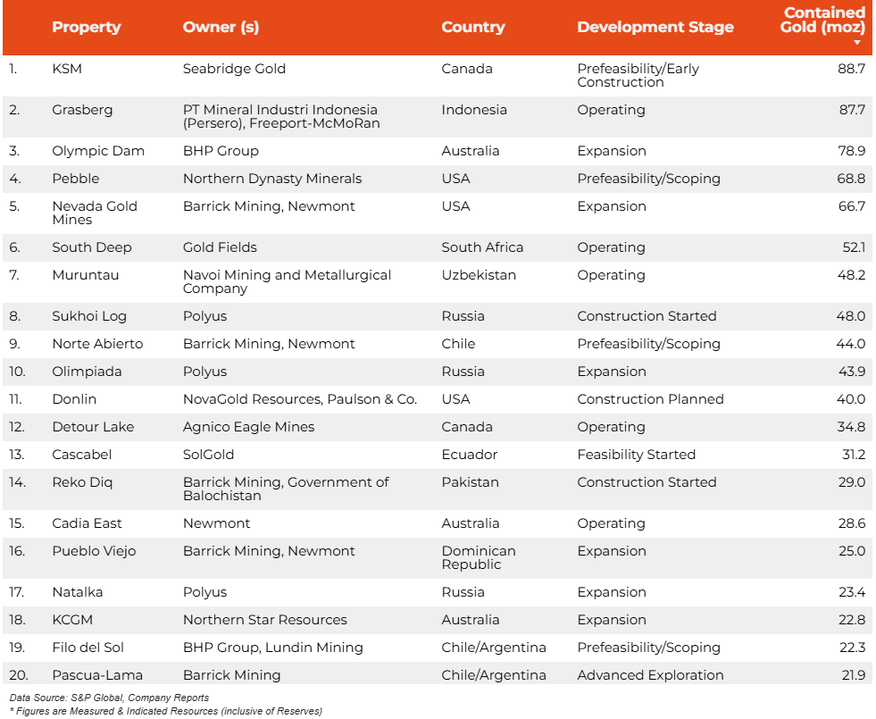While some of the 20 largest properties ranked by measured and indicated gold resources including reserves face an uphill battle to go into production and many greenfield properties have been stalled for years, the pipeline of potential projects continues to swell as gold prices stay on the boil.