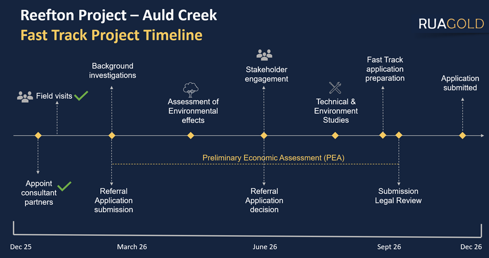 Field visits were completed during December and January, and the Company is targeting submission of a Fast-track referral application in Q1 2026, with a regulatory decision anticipated in Q2 2026. This decision will determine whether the Reefton Project qualifies for the six-month Fast-Track permitting process.