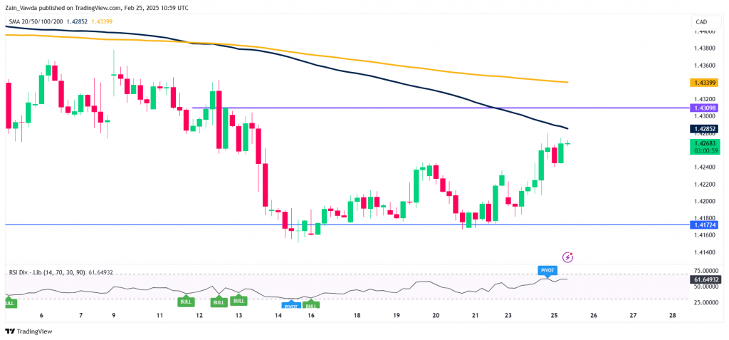 USD/CAD Four-Hour Chart, February 25, 2025