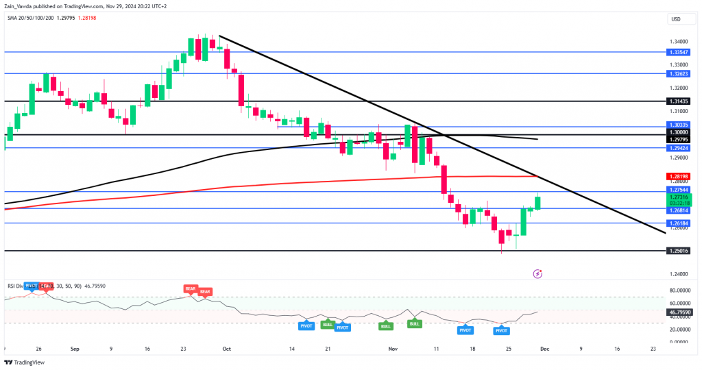 This as the RSI period 14 approaches the 50 neutral level with a break above likely signaling a shift in momentum. If this coincides with a trendline break bulls may be emboldened and this could push GBP/USD toward the 1.3000 psychological level once more. A lot of this will hing on the DXY as well and how the US Dollar performs next week.